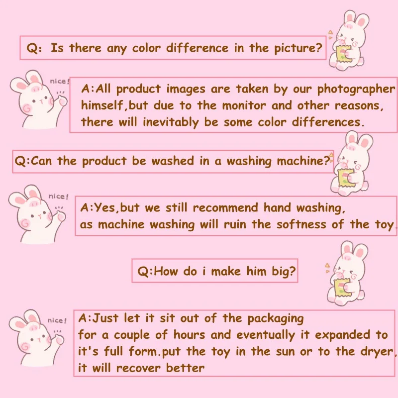 Основной материал: плюшЦвет: как на картинкеРазмер: около 20 смПосылка включает в себя: 1 игрушкаСоветы:Возможна погрешность в 1–3 см, связанная с особенностями измерения вручную.Из-за световых эффектов, яркости мониторов, настроек контрастности и т. д. могут быть некоторые незначительные различия в цветовом тоне фотографий и фактического товара.Для лучшей транспортировки, мы сжимаем продукт, поэтому посылка может быть меньше, чем обычно. Когда вы получите продукт, пожалуйста, выньте его, затем поместите его в воздух и слегка погладьте для отскока.Большое спасибо за понимание. Счастливые покупки!