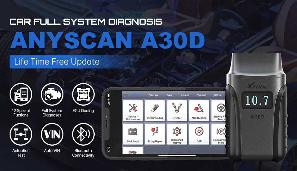 Автомобильный диагностический сканер XTOOL A30M OBD2 с 21 видами специальных функций, Bluetooth-совместимый считыватель кодов, бесплатное обновление