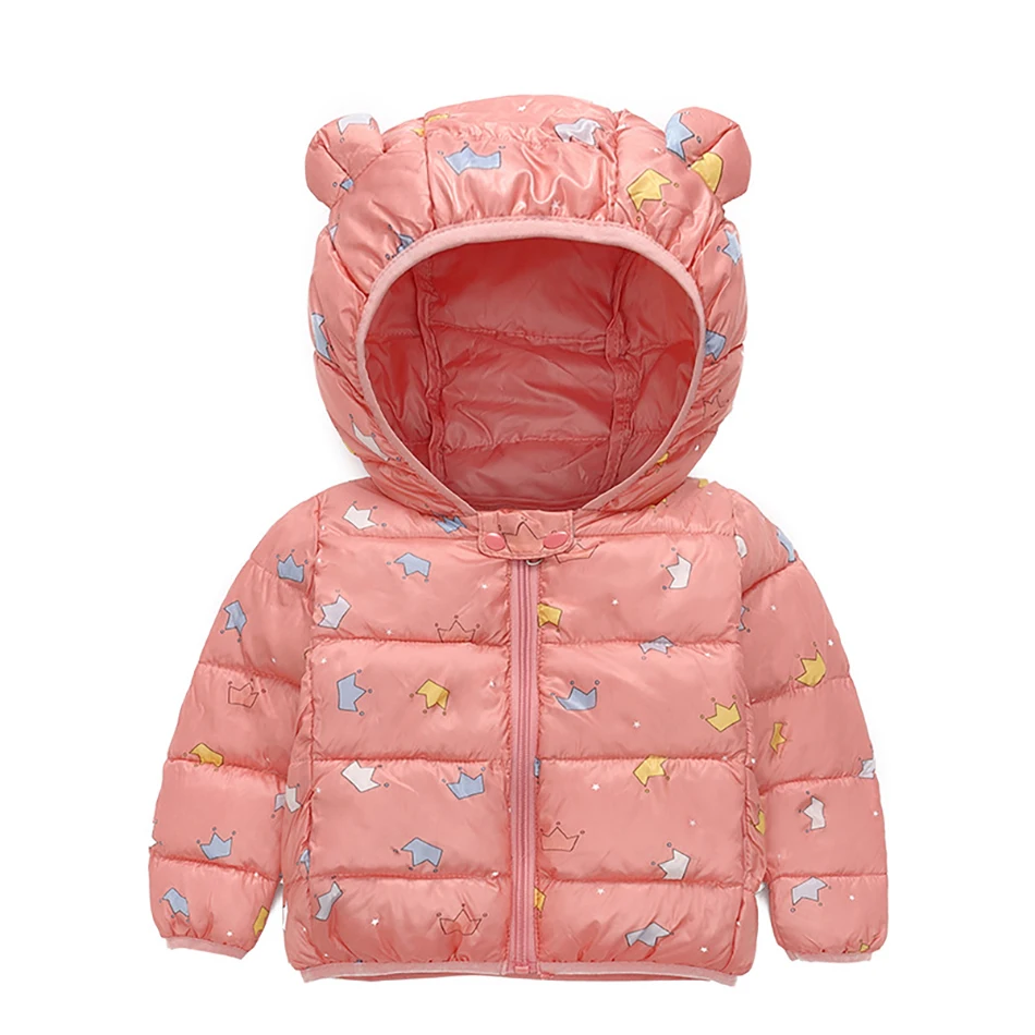 Куртки для маленьких мальчиков и девочек Детский Светильник пуховое пальто детская одежда на весну, осень и зиму, теплая верхняя одежда с ушками толстовки жилеты От 1 до 4 лет