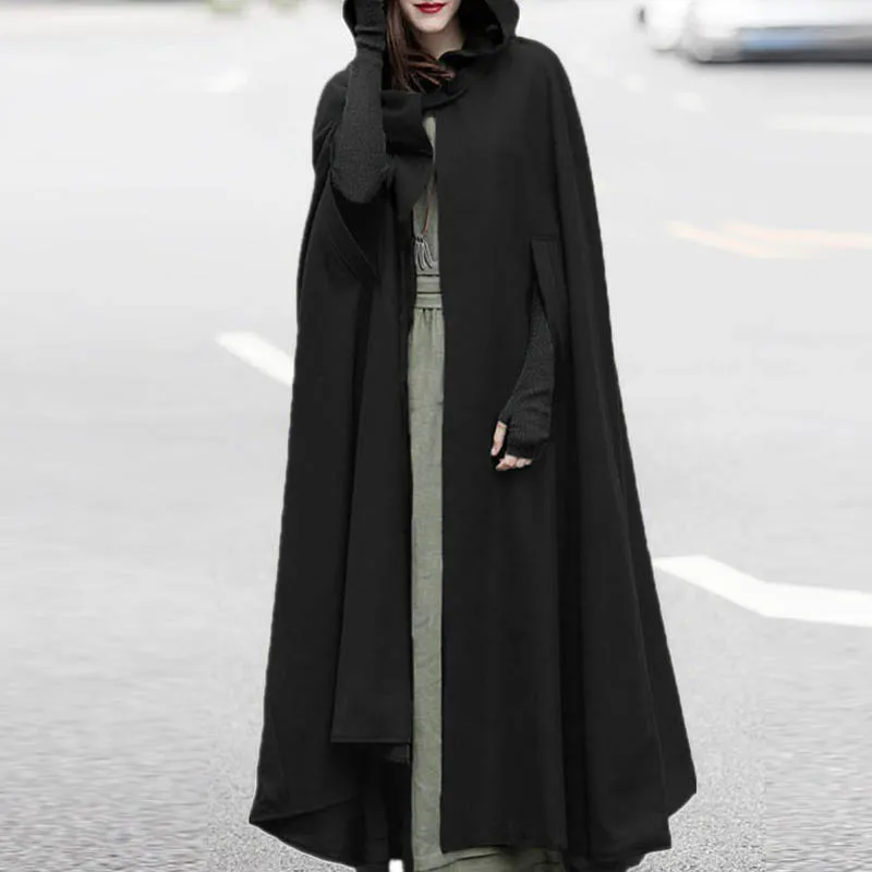Женское рождественское пончо для косплея ZANZEA, пальто, винтажная накидка с капюшоном, Повседневная Длинная Верхняя одежда с открытой передней частью, Женская однотонная ветровка, Топ