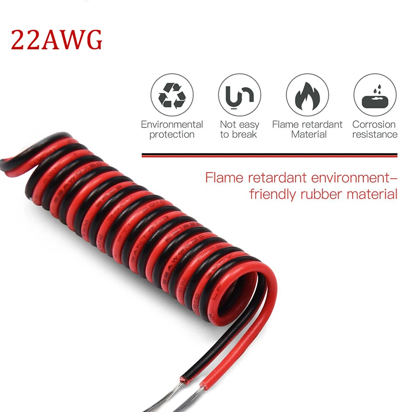 5 метров, черный + 5 метров, красный, 22 AWG, электрический провод с силиконовой оплеткой UL1007 22AWG, 2 контакта, ПВХ, изолированная Луженая медь, светодиодный кабель