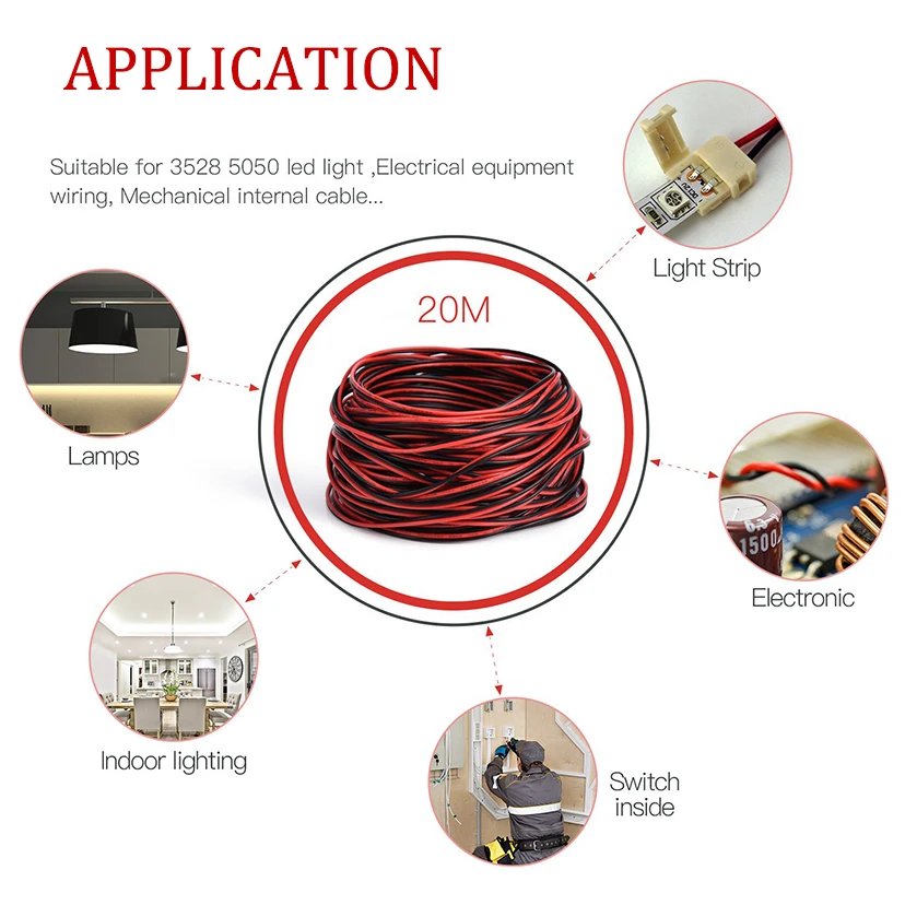 22AWG 2Pin ПВХ изолированный Луженый Медный светодиодный "сделай сам" для наращивания кабеля