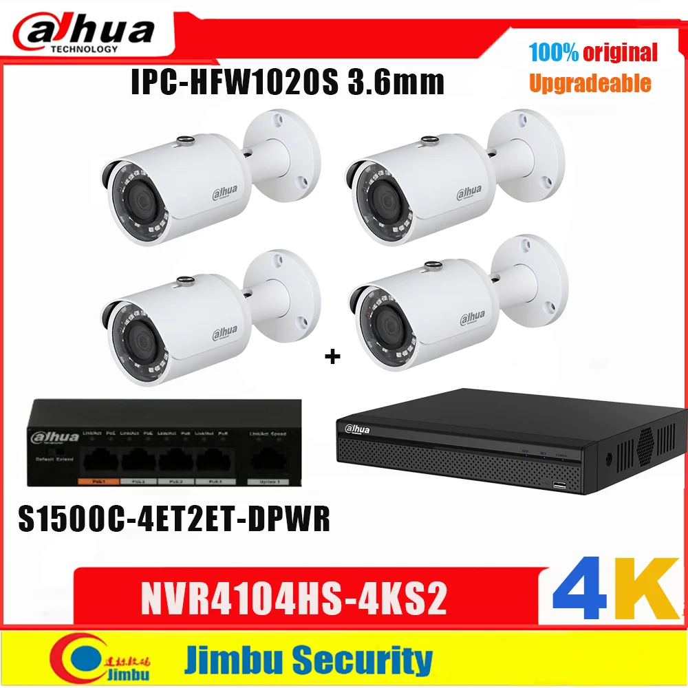 Оригинальная 4K 4-канальная фотокамера Dahua, стандартная IP-камера с переключателем, 4-портовая стандартная система видеонаблюдения, комплект сетевого видеорегистратора