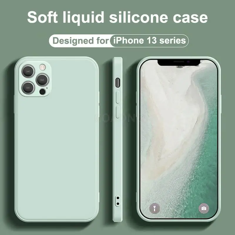 Мягкий жидкий силиконовый чехол для iPhone 13 12 Pro Max 13 Mini SE 2020 12Mini TPU с прямым краем защитный чехол-бампер