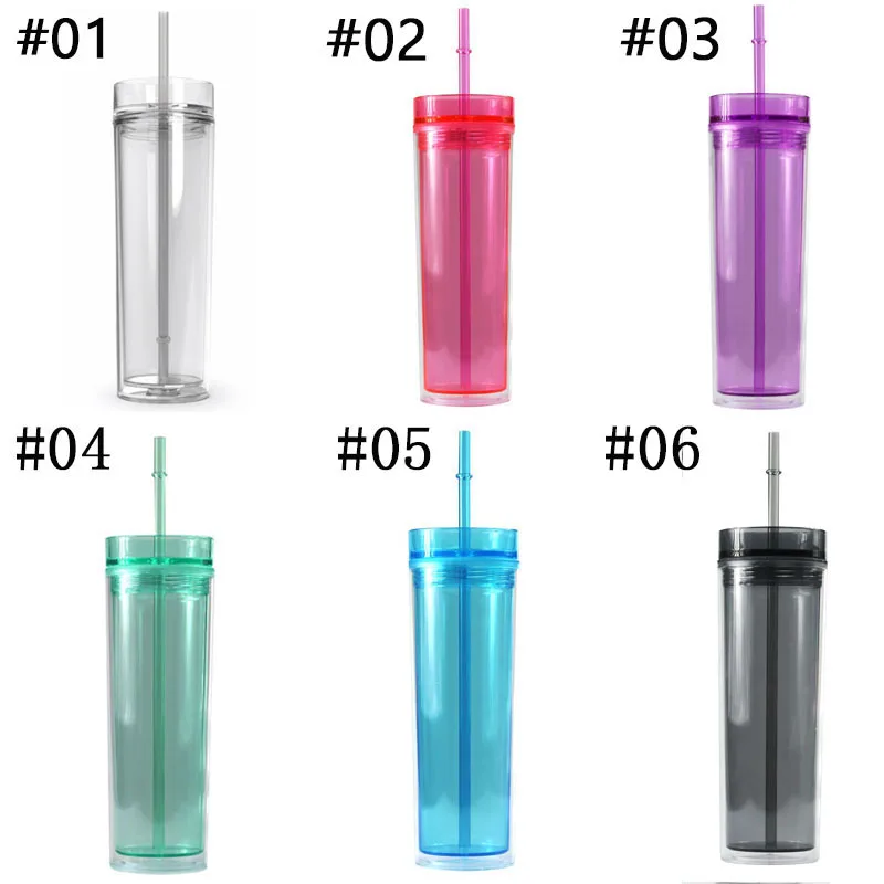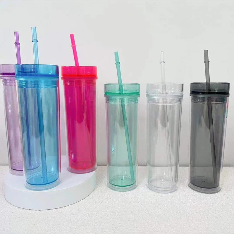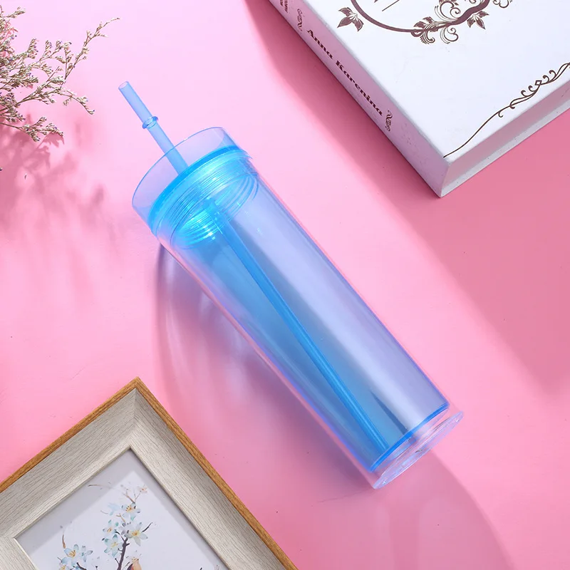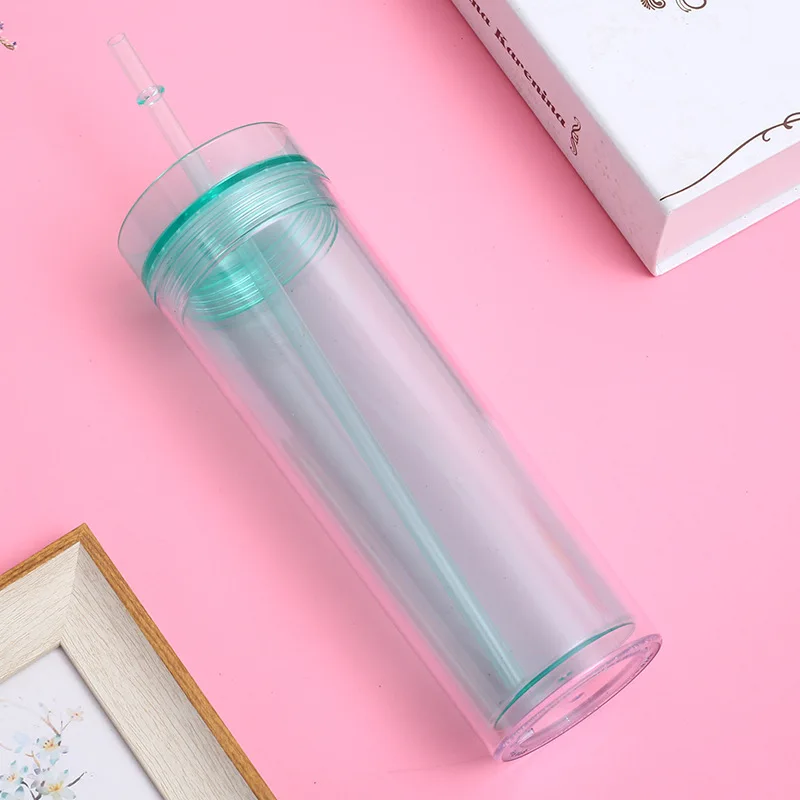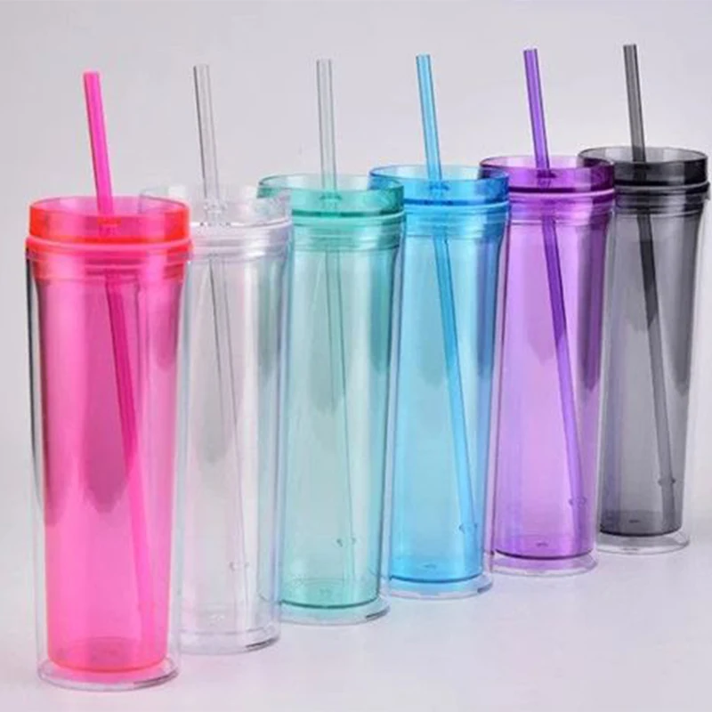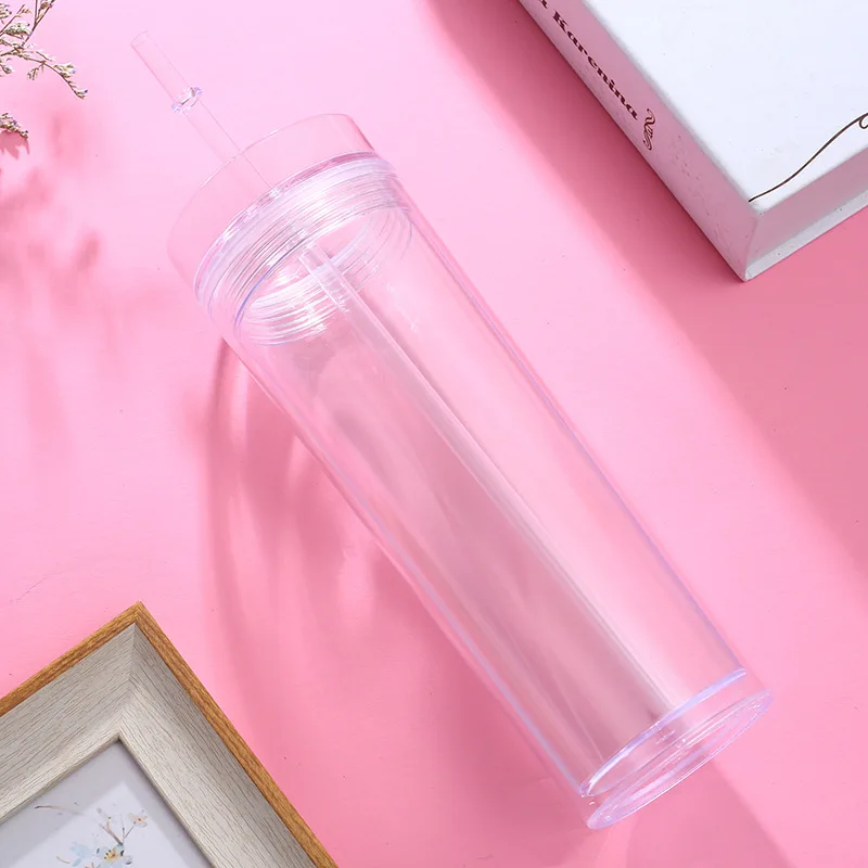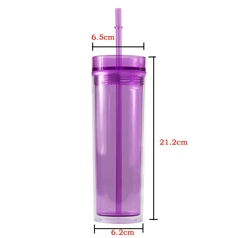 Стакан акриловый тонкий с трубочкой, 16 унций, пластиковый прозрачный стакан с двойными стенками, изолированный стакан для молока, для подарков