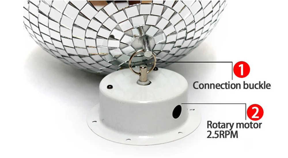 Примечание:1. Лампы в комплект не входят.2. Поскольку зеркальный шар состоит из множества маленьких очков. Во время транспортировки авиапочтой некоторые могут упасть.
