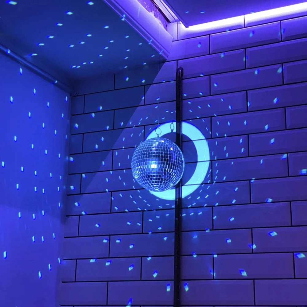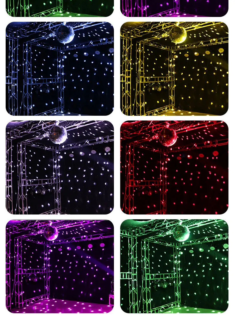 Характеристика:1. Идеально подходит для вечеринок и семейных дискотек. Светильник будет освещать ваш ландшафт, окна магазинов, свадьбы, праздники, дискотеки, Рождество, Четвертое июля, музыкальные фестивали, школьные фестивали, дни рождения, клубы, бары, Новогодние вечеринки, танцевальные полы и многое другое!2. Вращающийся Зеркальный Шар отражает светильник на его поверхности. Таким образом, будут созданы блестящие световые эффекты.3. Он используется для KTV, семейных встреч, ночных клубов, сцен и т. д.4. Просто Повесьте его на стену или потолок, и вам хорошо идти. Это подходит для украшения или вечеринок.5. Многие маленькие очки сделали внутренний шар, чтобы закрепить зеркало на нужном месте, не двигаясь.
