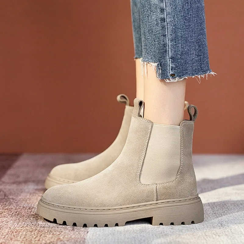 Ботинки Челси, массивные ботинки, женская зимняя обувь, замшевые бо...