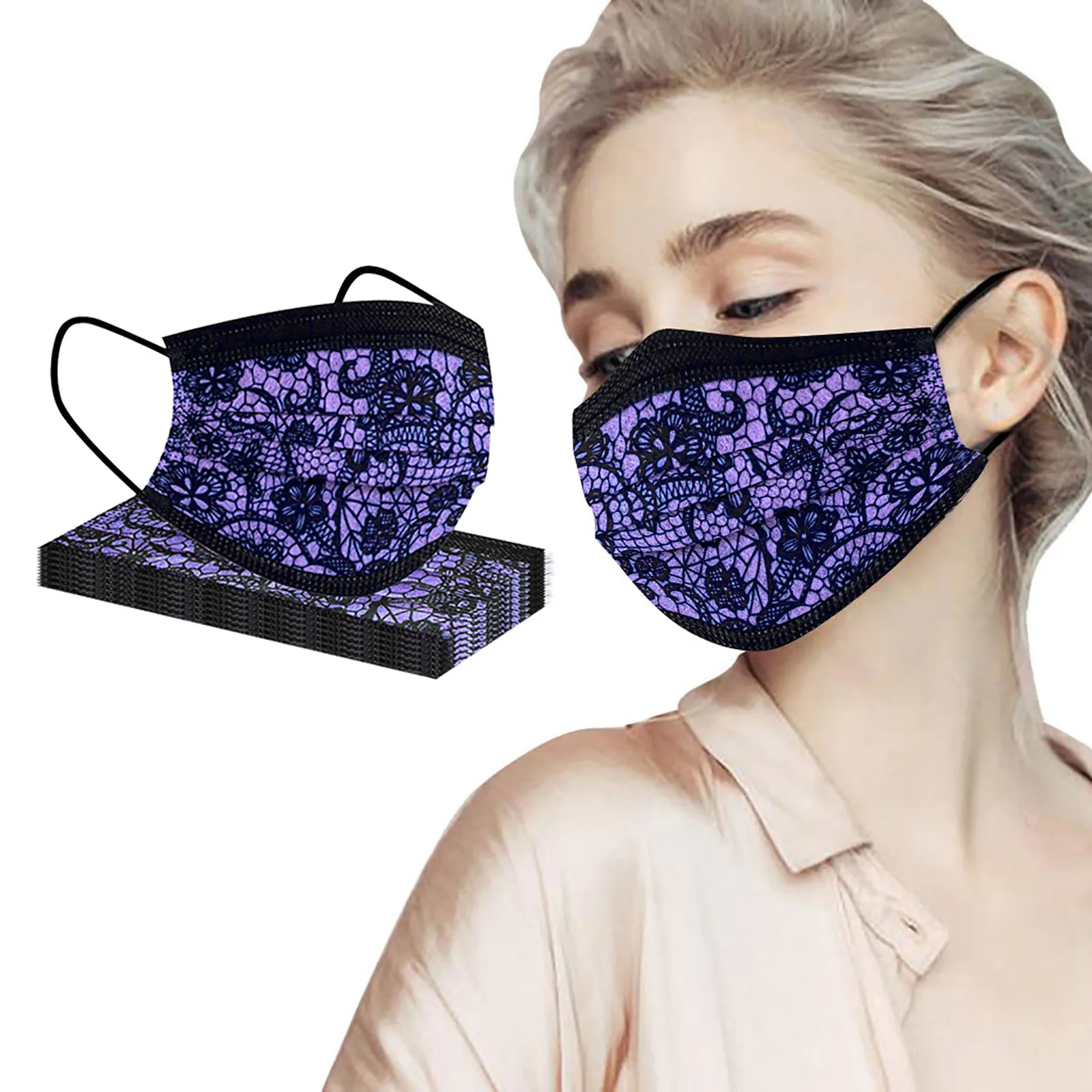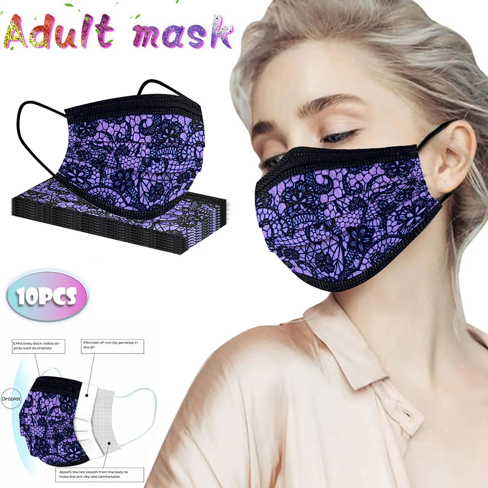Маска кружевная одноразовая для взрослых, защитная дышащая 3-слойная, Пылезащитная, праздничная, для косплея на Хэллоуин, 10 шт.
