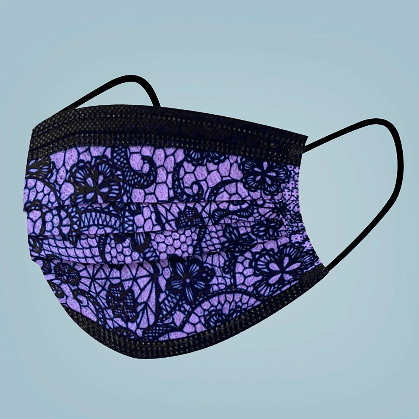 Маска для лица одноразовая 3-слойная с кружевом и принтом, 10 шт.