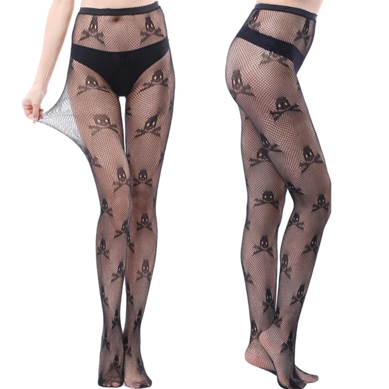 Женские ажурные колготки, женские чулки в сеточку, Колготки с череп...