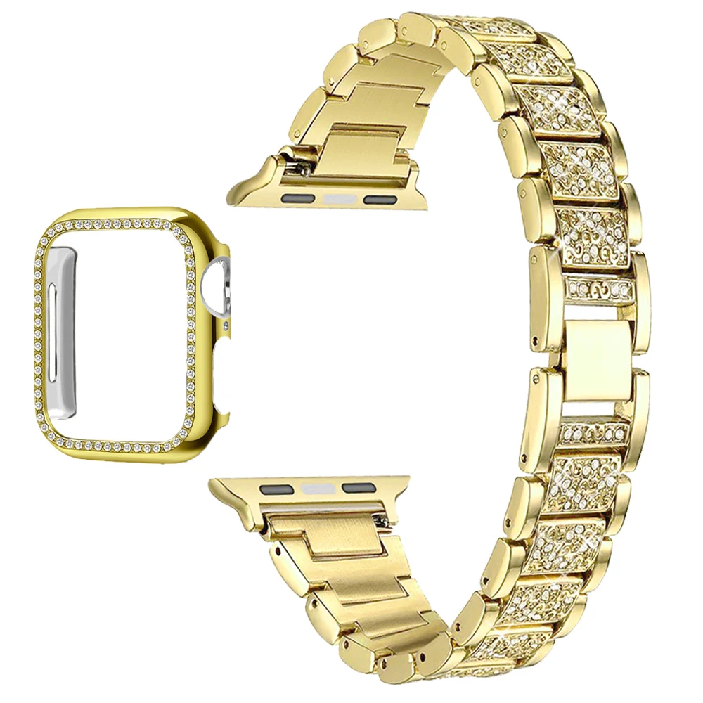 Браслет из нержавеющей стали для Apple Watch Band Series SE 7 6 5 4 3, Женский бриллиантовый ремешок для iWatch 6 44 мм 40 мм 42 мм 38 мм