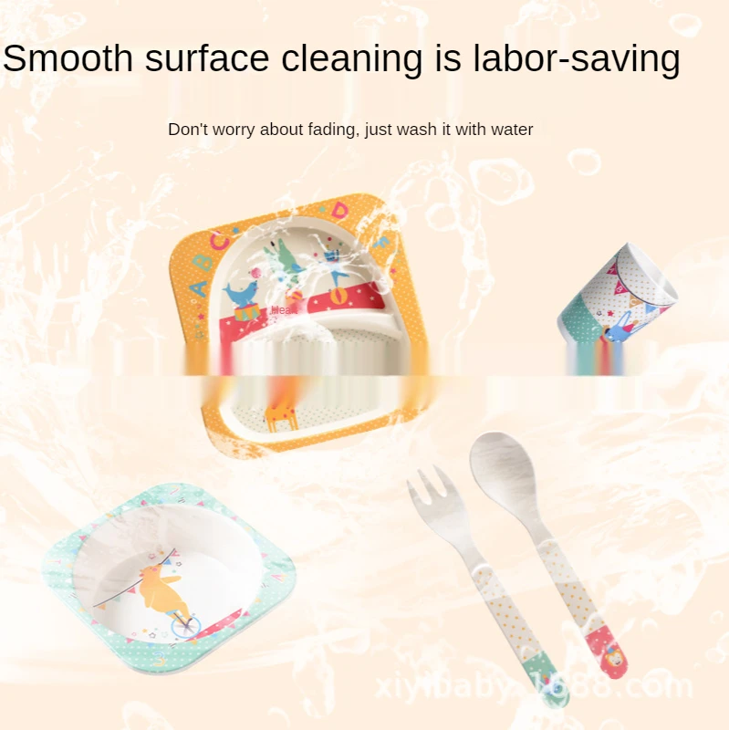 Чаша для кормления ребенка Экологически чистая посуда из бамбукового волокна набор из пяти предметов детская тарелка с рисунком из мультфильма