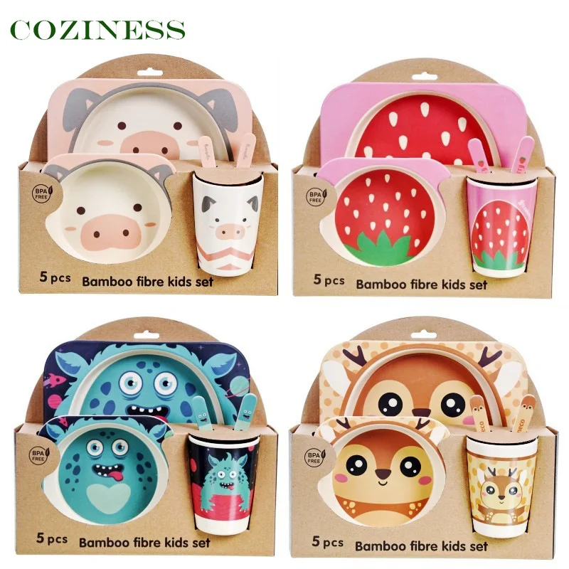 5 шт.компл. детская столовая посуда из бамбукового волокна с рисунк...