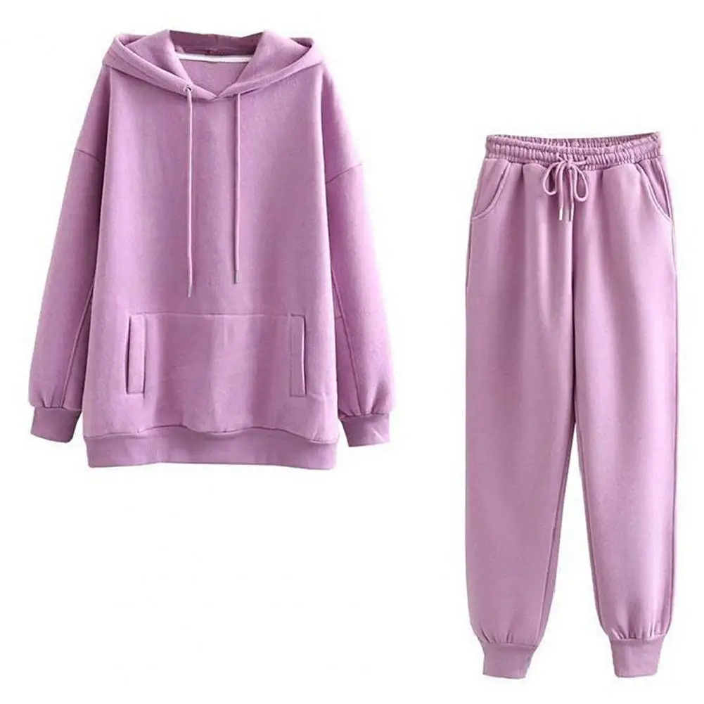 Однотонный женский комплект из двух предметов, свитшот с капюшоном и длинными рукавами и карманами, брюки с эластичным поясом, уличная одежда