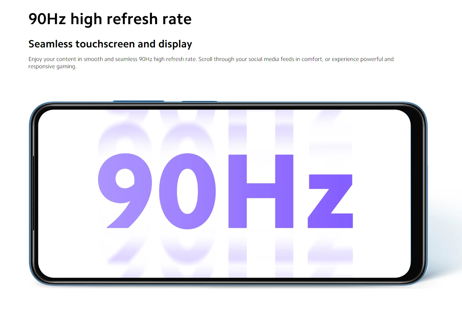 Наслаждайтесь вашим содержанием в гладкой и бесшовной частоте 90 Гц высокой частоты обновления. Прокрутите ваши каналы социальных сетей в комфорте, или испытайте мощные и отзывчивые игры.