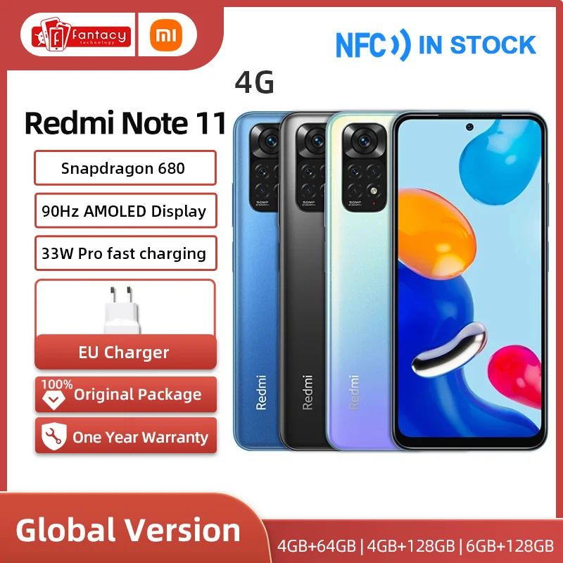 Смартфон Xiaomi Redmi Note 11, Snapdragon 680 восемь ядер, NFC, 33 Вт, Pro, зарядка, камера 50 МП, 90 Гц, AMOLED дисплей