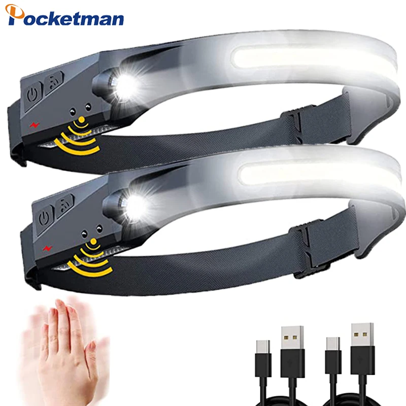 Светодиодный головной фонарь с датчиком движения, светодиодный головной фонарь с COB матрицей и встроенным аккумулятором, светодиодный фонарик с USB-зарядкой, Головной фонарь, светильник онарь