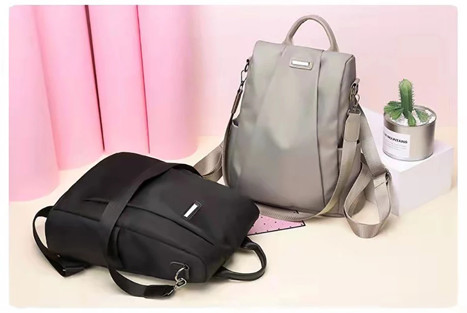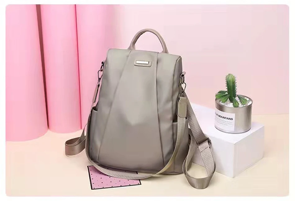 Брендовый рюкзак в студенческом стиле, вместительная нейлоновая Водонепроницаемая дорожная сумка через плечо, Женская однотонная сумка со скрытой молнией и защитой от кражи