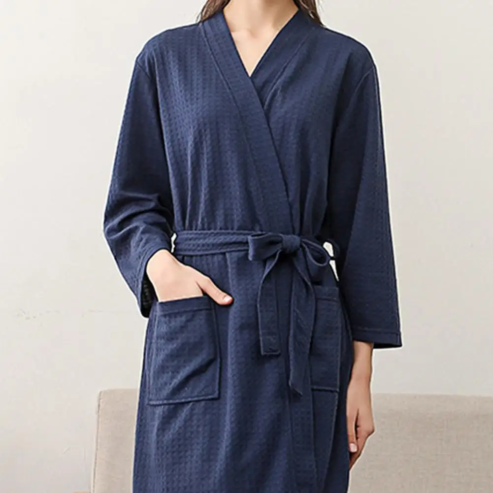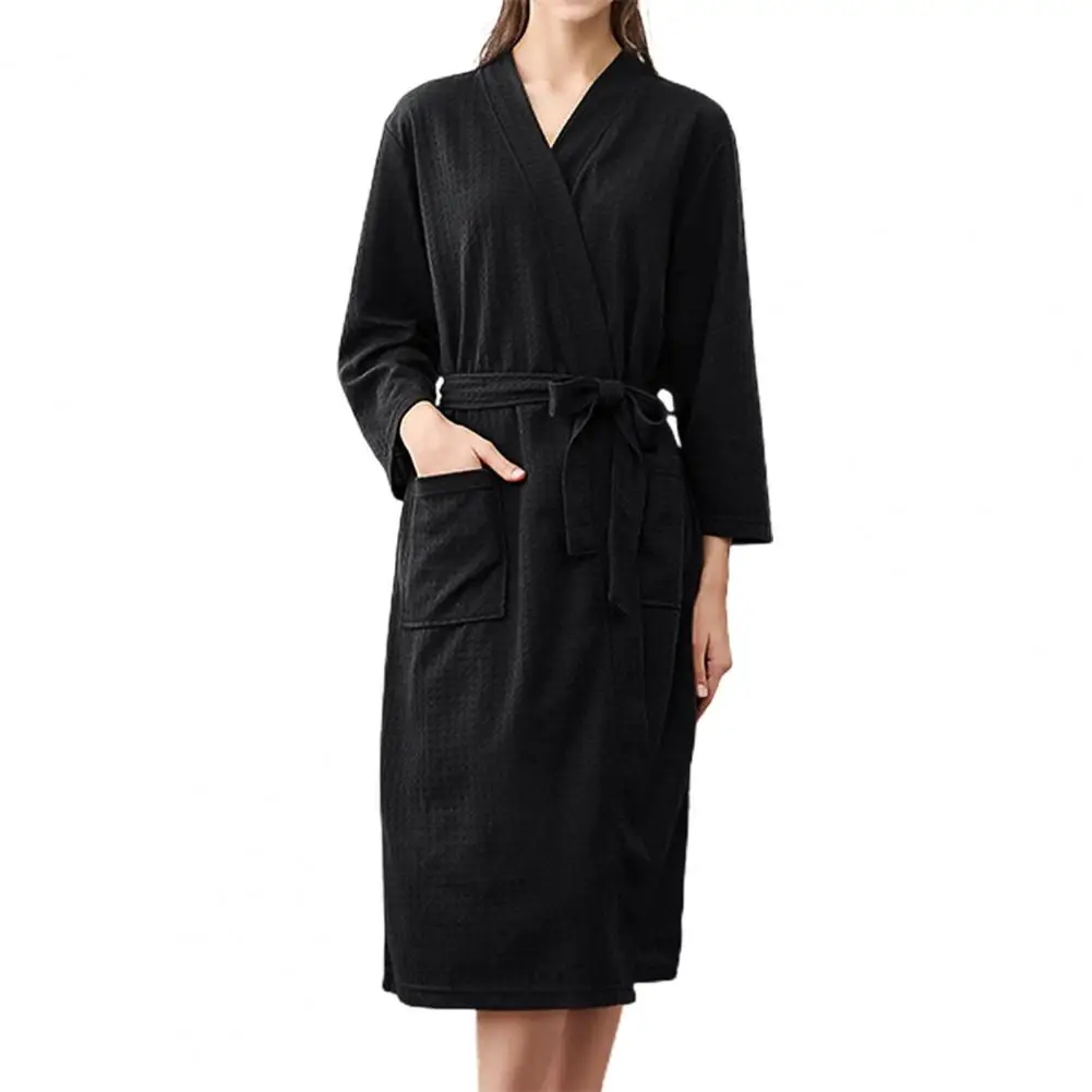 Летние женские пижамы 2021, Длинный Мягкий банный халат, кимоно, однотонный халат с вафельным узором и поясом, халат, одежда для сна, Женская домашняя одежда