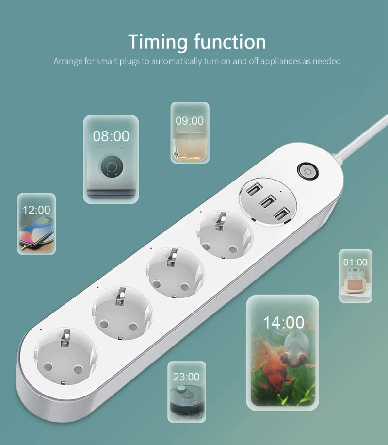Умный удлинитель, универсальный, Wi-Fi, поддержка Alexa Google Home, 4 розетки европейского стандарта, 3 USB-порта для зарядки, управление через приложение