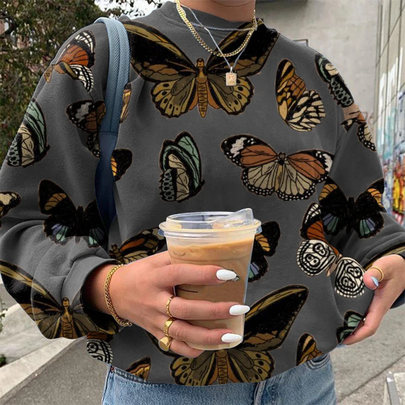 Женские толстовки в стиле ретро Харадзюку с принтом бабочки, осенние модные свободные топы с круглым вырезом, свитшоты, зимний офисный пуловер с длинным рукавом