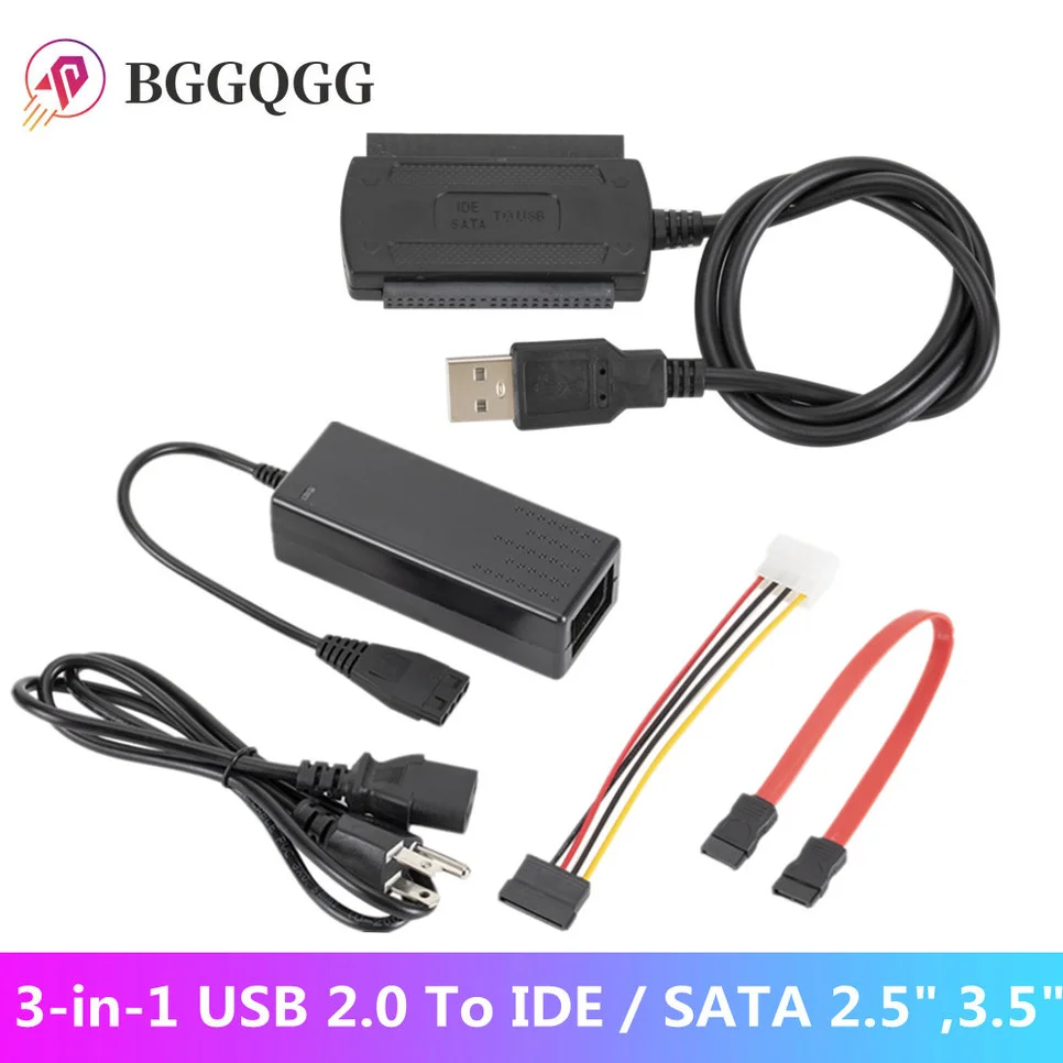 Кабель-переходник BGGQGG 3-в-1 с USB 2,0 на IDE SATA 2,5, 3,5 дюйма для жесткого диска HDD SSD 480
