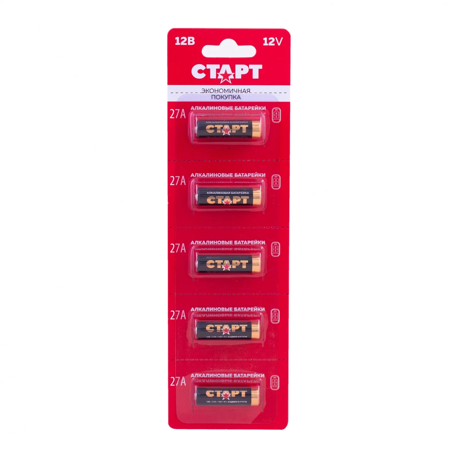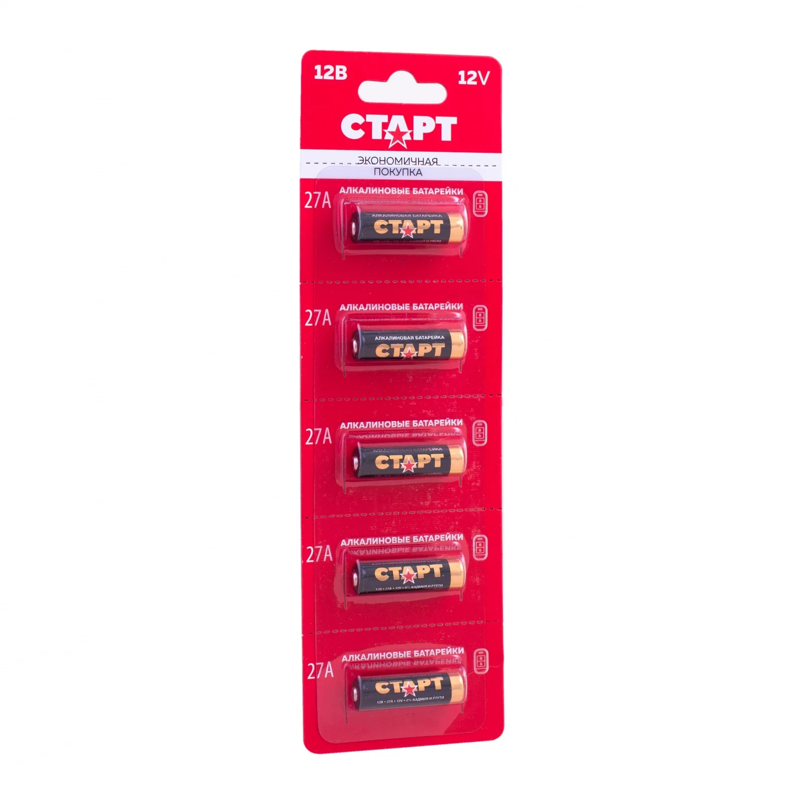 Батарейки щелочные батарейки мини-мизинчикового типа 27А (MN27), 5 шт, напряжение 12 В, 0,22 мА (СТАРТ 27А-BL5)