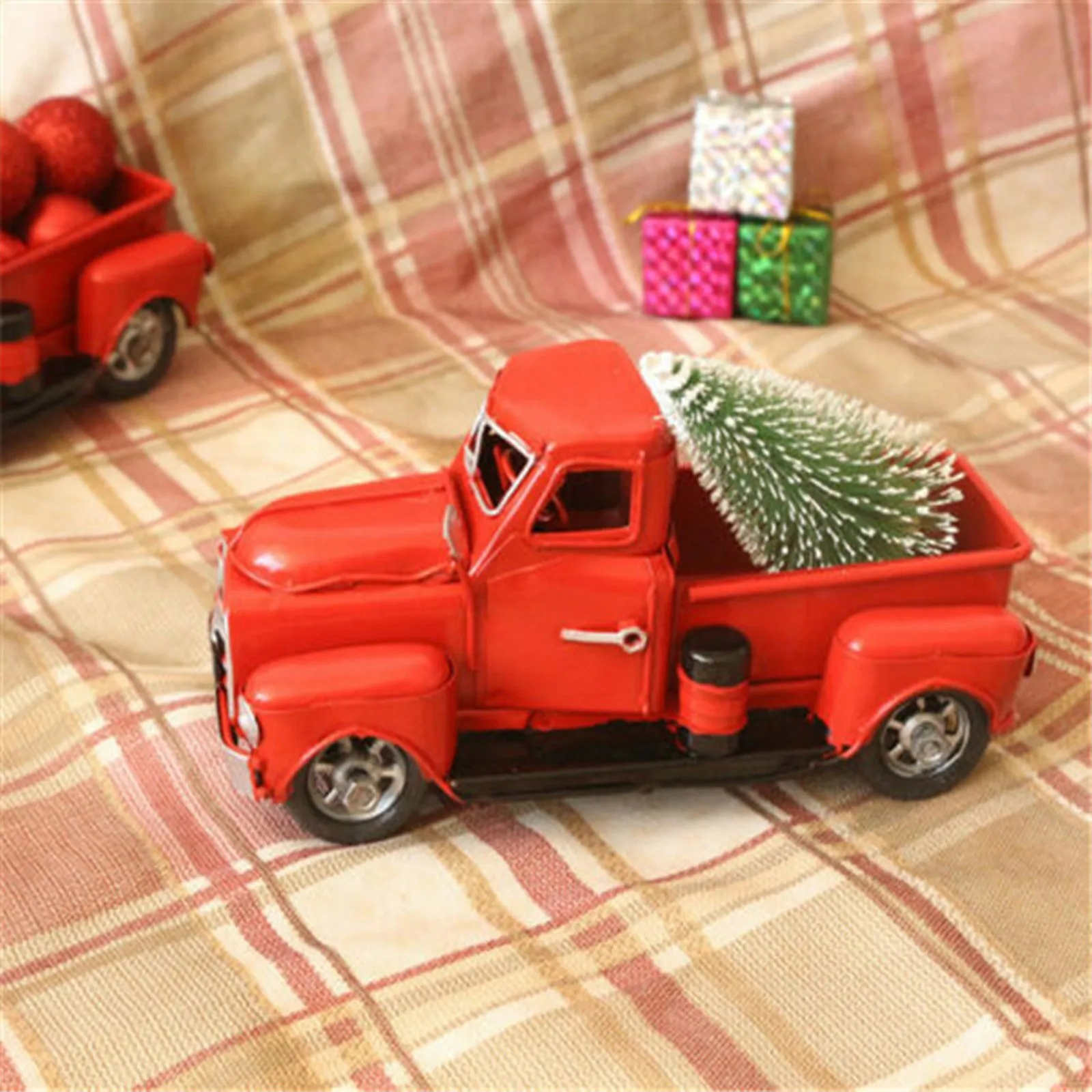 Винтажный металлический классический пикап в деревенском стиле с рождественской елкой, Красный Декор для дома и офиса, праздничные украшения сделай сам, товары для вечерние, 1 шт.