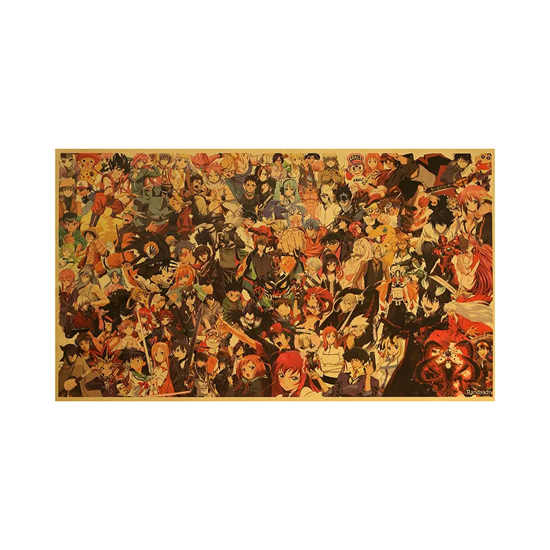 Постер из крафт-бумаги с японскими классическими персонажами аниме, 70x40 см
