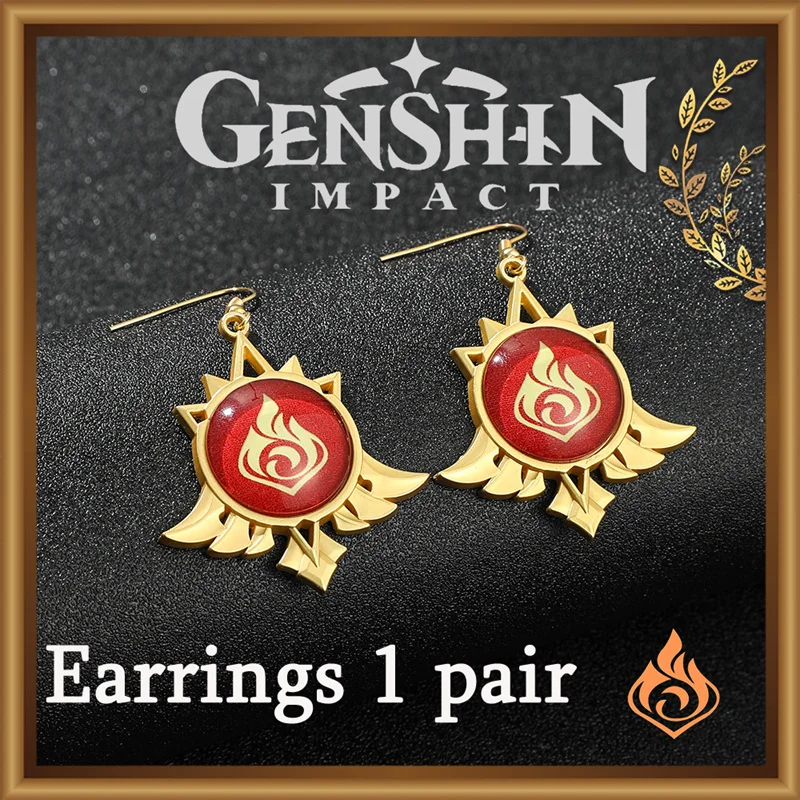 Игровые ударные серьги Genshin, металлические подвесные серьги с кр...