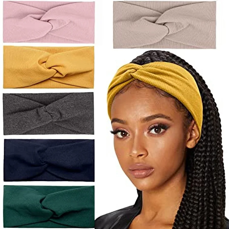Женская повязка на голову, эластичная повязка на голову с перехлёстом и узлом, тюрбан, мягкая женская витая повязка на голову, аксессуары для волос для девушек, 2021