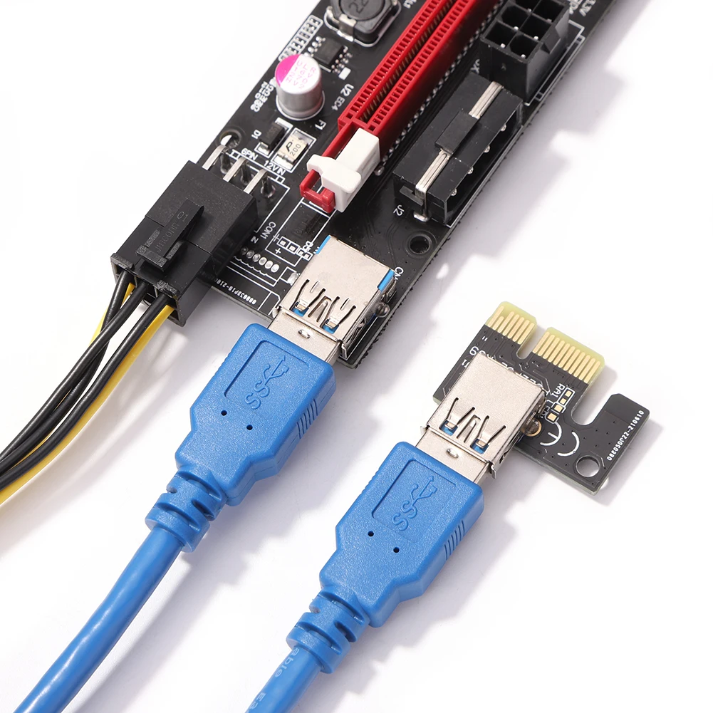 Райзер-карта PCI-E, 1X до 16X, USB 3,0, 4 контакта, 6 контактов