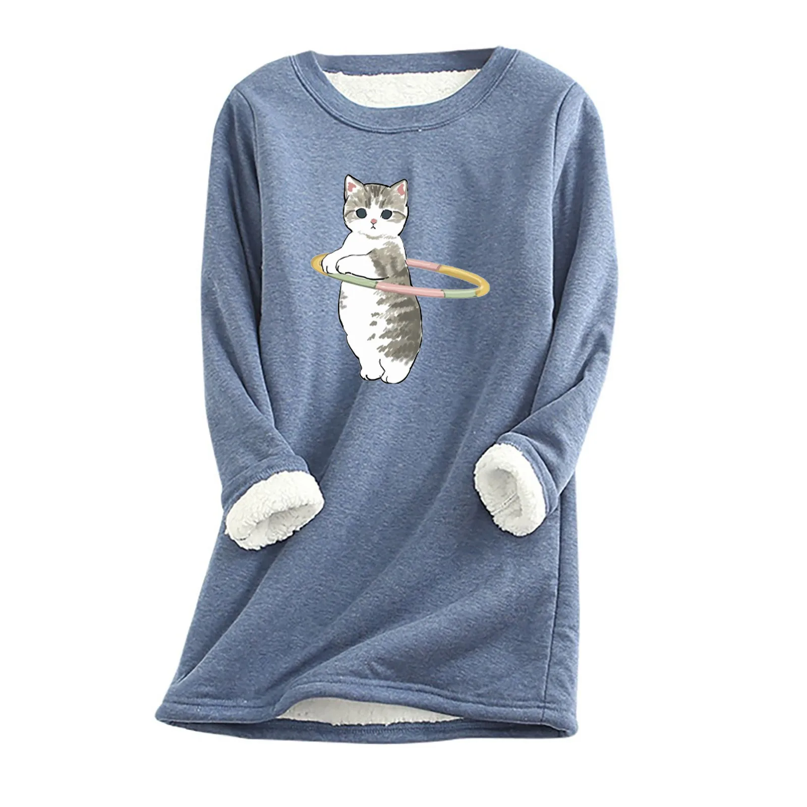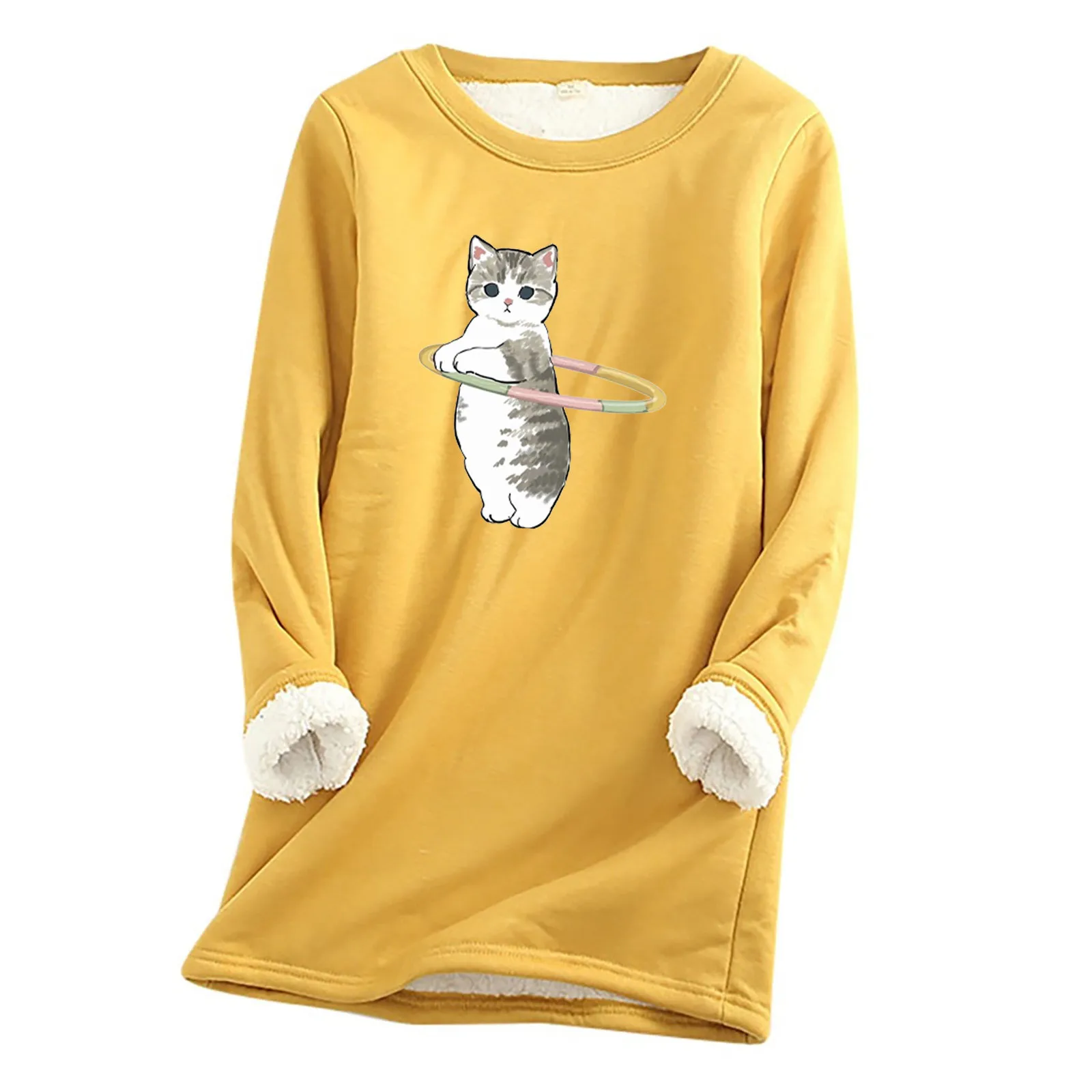 Зимние женские толстые бархатные теплые хлопковые флисовые теплые пуловеры с длинным рукавом, топы, повседневная одежда для отдыха с кошкой, женский теплый свитер