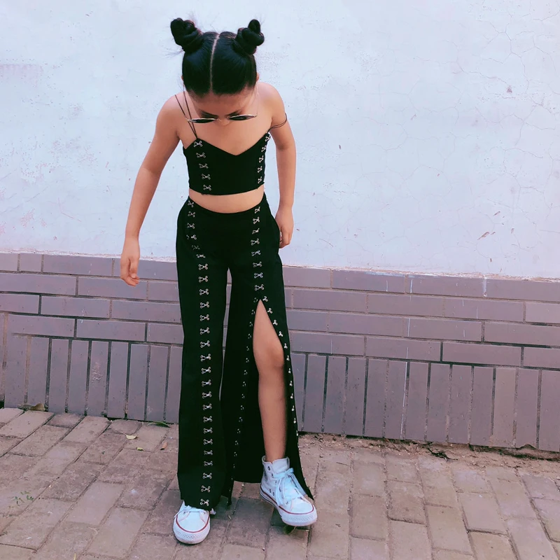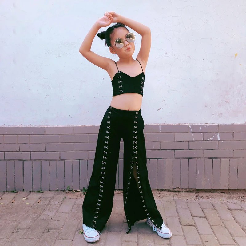 Комплект из 2 предметов для девочек, майка или брюки с широкими штанинами на пуговицах, уличная мода, на весну-осень, от 1 до 13 лет