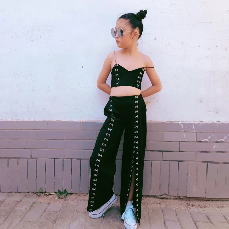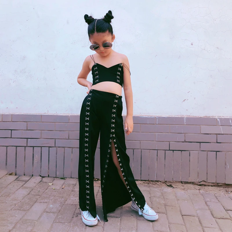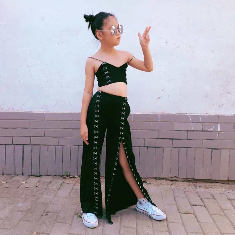 Название:Весенне-осенний комплект из 2 предметов для девочек, топ на бретелях + широкие штаны Детские костюмы Детская уличная одежда, модная одежда с перекрестными пуговицами для детей от 1 до 13 лет