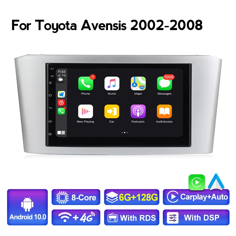 Автомобильный мультимедийный видеоплеер с экраном 7 дюймов на Android 2002 для Toyota Avensis T25 2008-, автомобильный радиоприемник с Wi-Fi и GPS-навигацией для Carplay