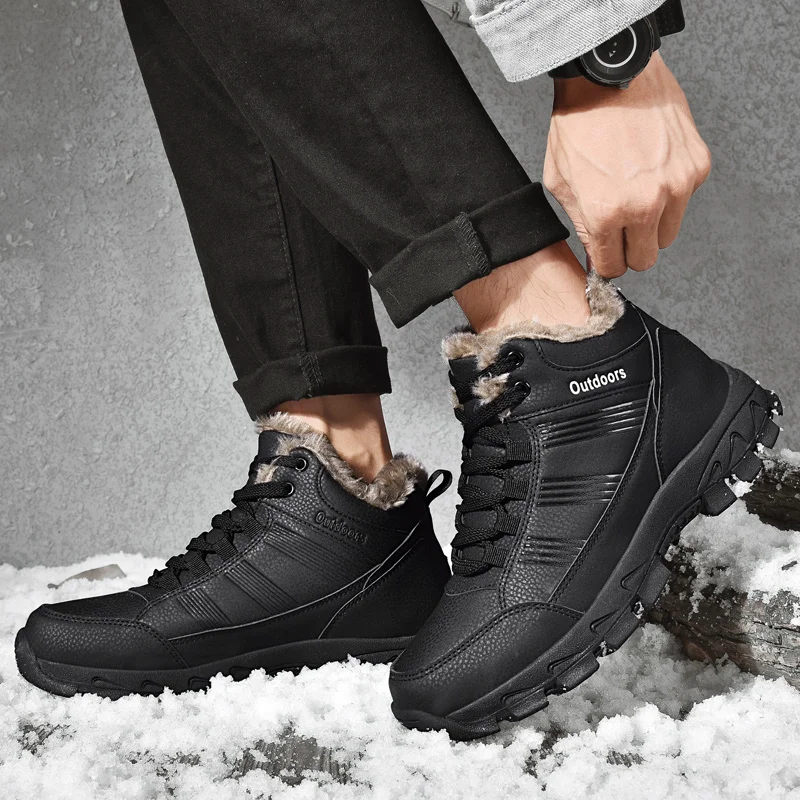 Ботинки мужские кожаные, теплые водонепроницаемые меховые сапоги, уличная зимняя Рабочая повседневная обувь, Военные боевые резиновые ботильоны
