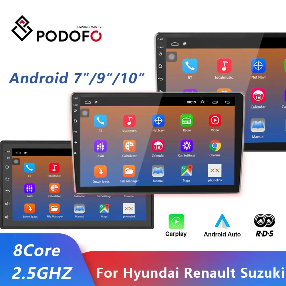Автомобильный мультимедийный плеер Podofo 7 "/9"/10,1 "Android, автомагнитола, аудио, стерео, 2din, Авторадио, GPS, Bluetooth, Wi-Fi, Mirrorlink, MP5 плеер, радио