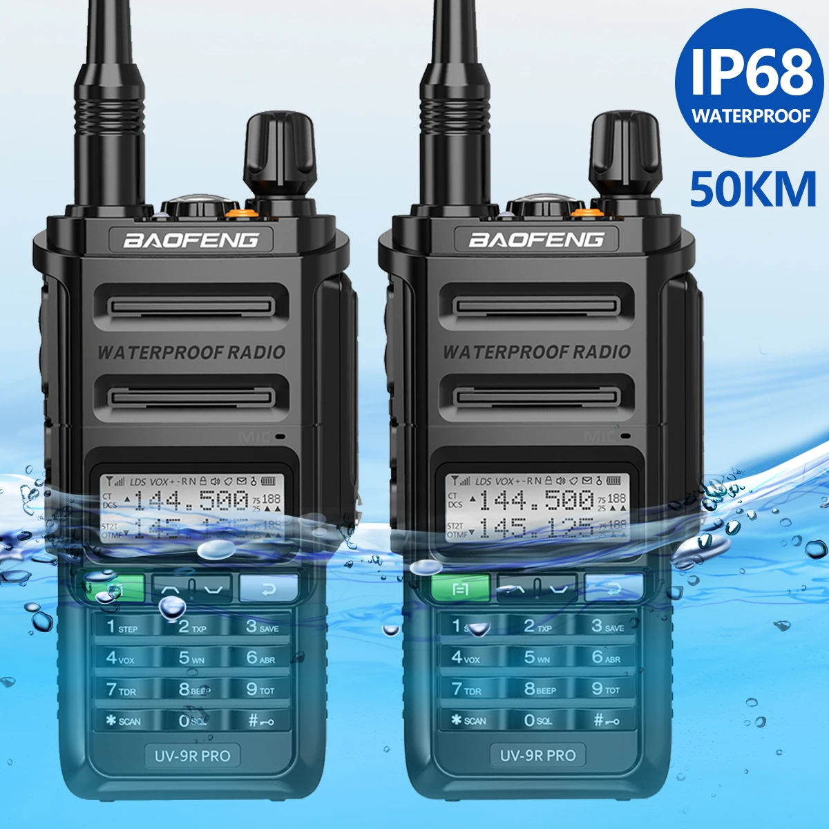 2 шт., портативная рация Baofeng UV-9R PRO IP68, водонепроницаемая, Двухдиапазонная, 136-174400-520 МГц, улучшенная рация UV9R, дальность 50 км
