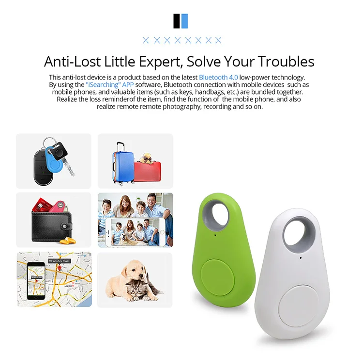 5) ценные вещи против потери, когда мобильный телефон и устройство против потери превышают фактическое расстояние по умолчанию, двусторонняя Автоматическая сигнализация, предупреждает владельца, чтобы предотвратить потерю, используется для пожилых людей, детей, домашних животных и т. Д.