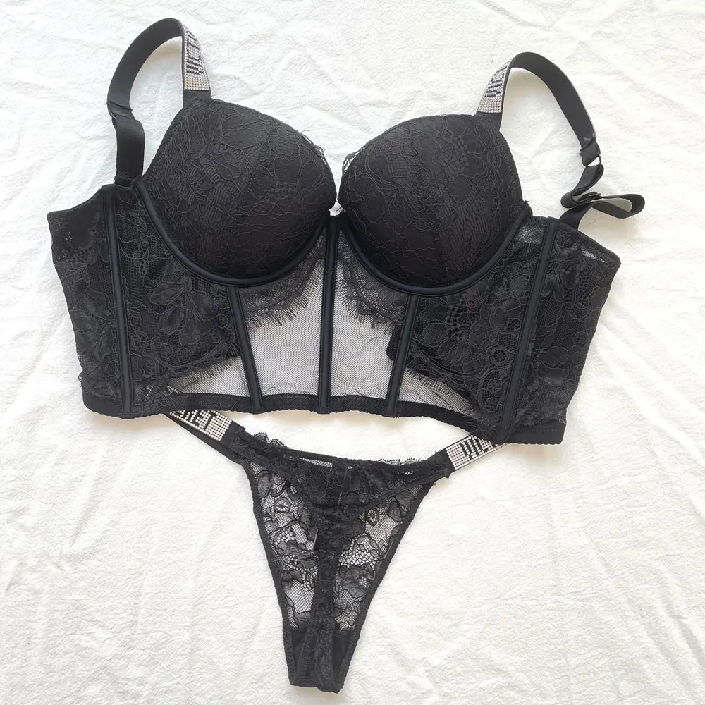 Кружевные бюстгальтеры пуш-ап, стразы, фирменный дизайн, нижнее белье, женский бюстгальтер и трусики, комплект, сексуальное комфортное дышащее бесшовное белье