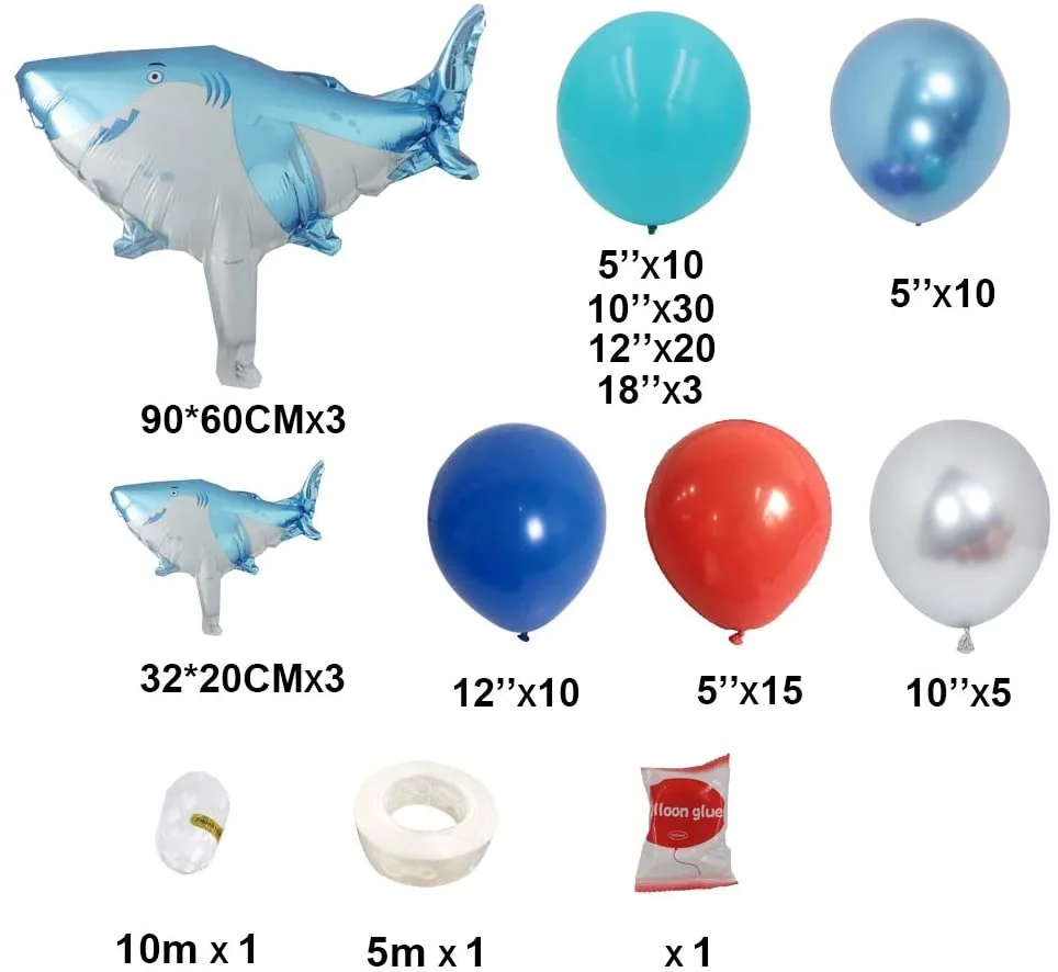 113 шт тема океана Красный Синий Серебряный металлический шар гирлянда Набор для арки детский душ День Рождения вечерние животные алюминиевый шар из фольги украшение