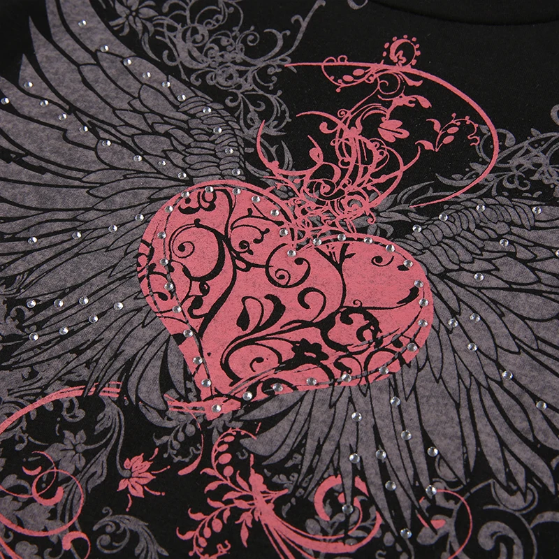 Модная женская футболка Стразы Y2k Harajuku с графическим рисунком ...