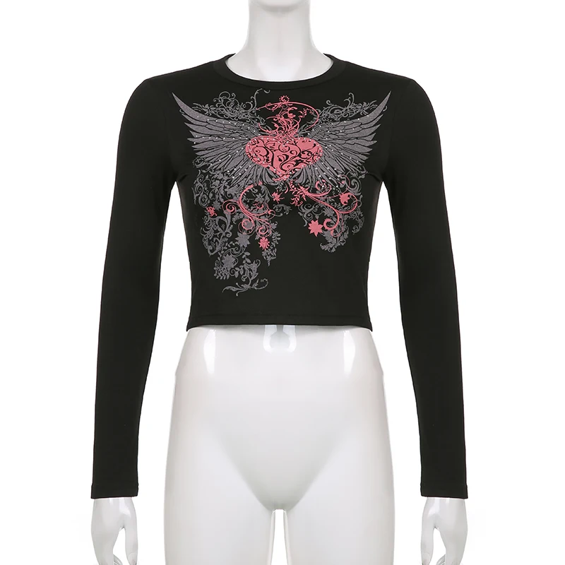Черная Женская футболка Darlingaga Grunge с готическими крыльями и ...