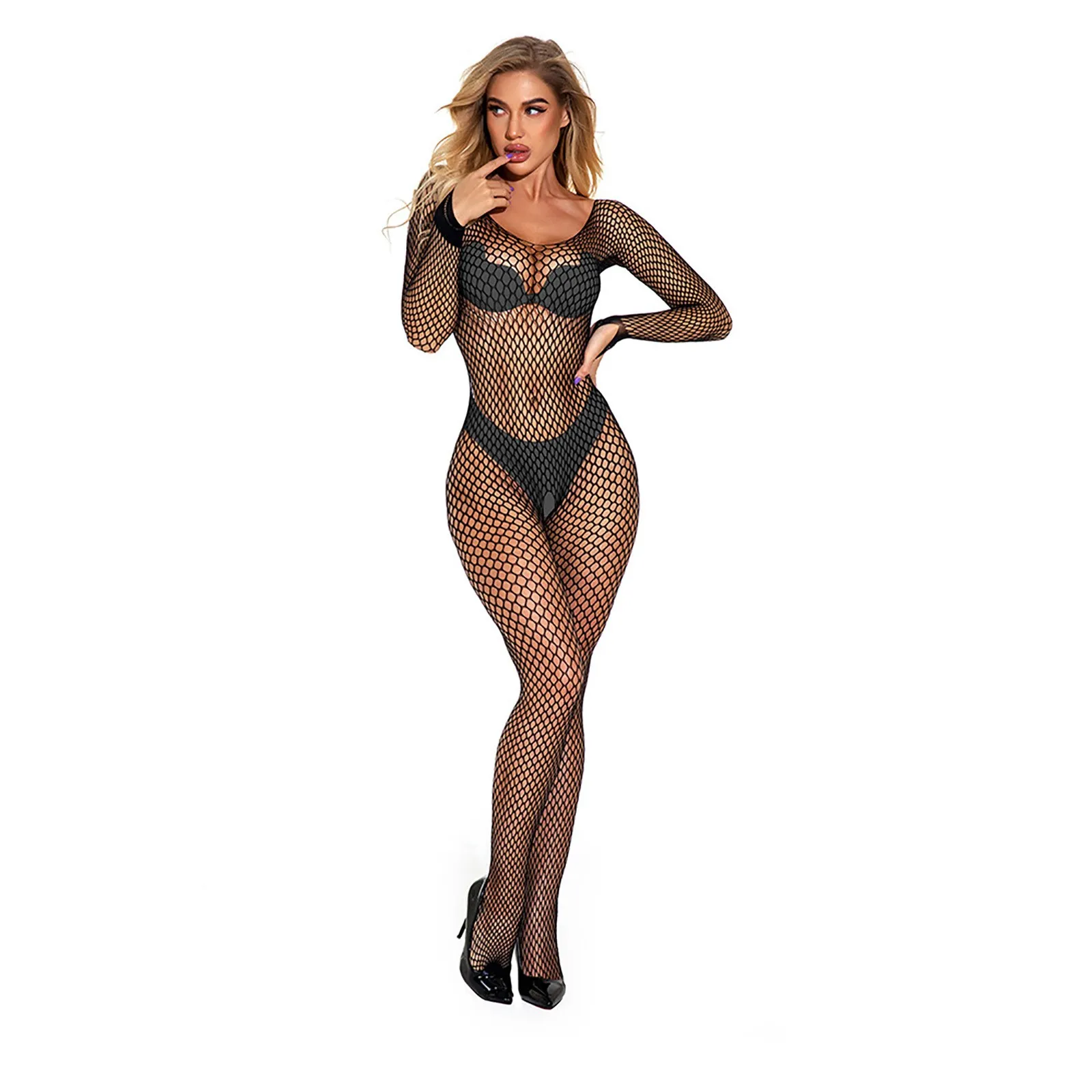 Сексуальное Сетчатое нижнее белье, боди, женское экзотическое нижнее белье, комбинация, Прозрачное нижнее белье с длинным рукавом, боди, экзотическое нижнее белье