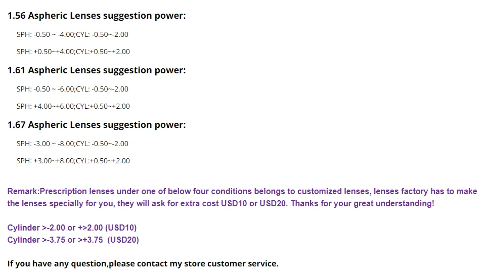 Асферические очки линзы; 1,56, 1,61, 1,67, 1,74 (+12,00-12,00)