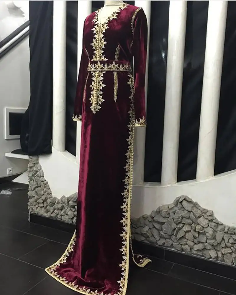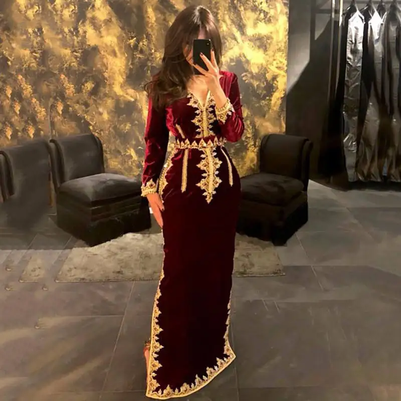 Марокканские Caftan вечерние платья 2022 с V-образным вырезом платье русалки для выпускного вечера бархатное вечернее платье с длинным рукавом