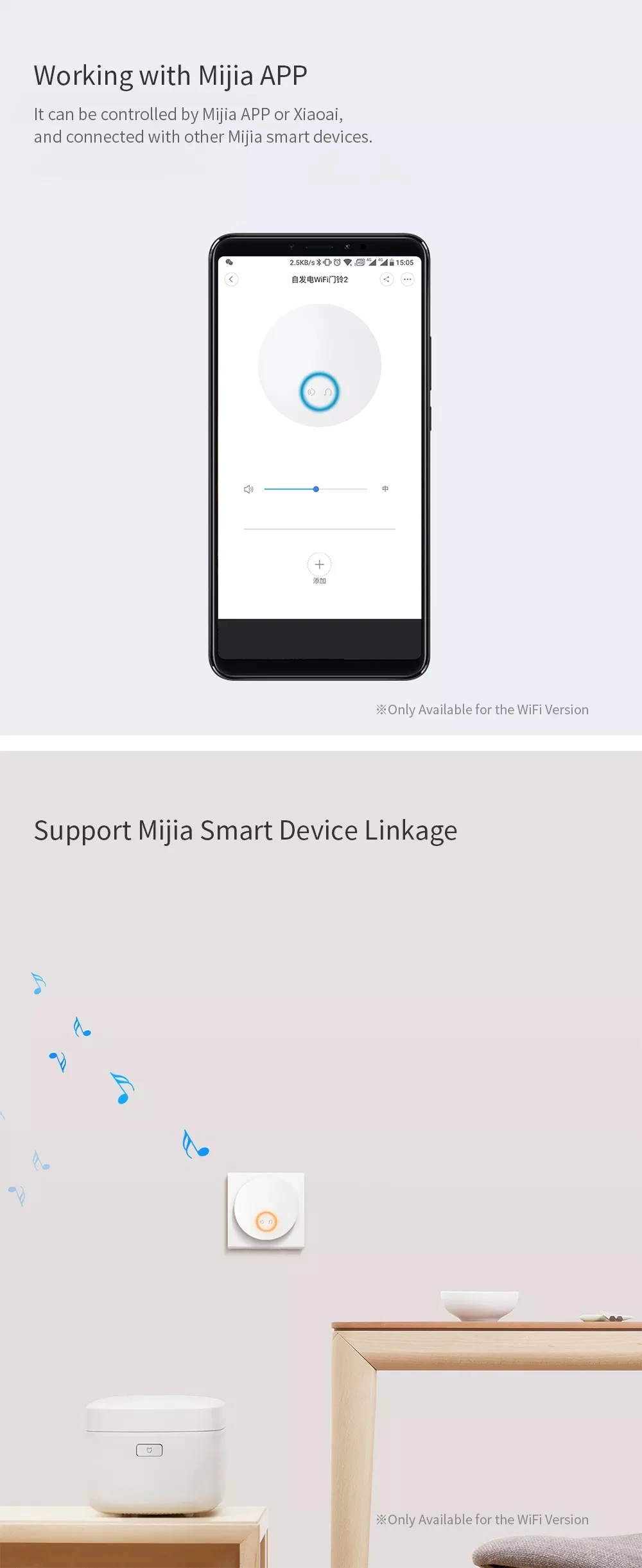 Обратите внимание: мобильный телефон с удаленным напоминанием и функция связи Mijia доступны только в версии WiFi