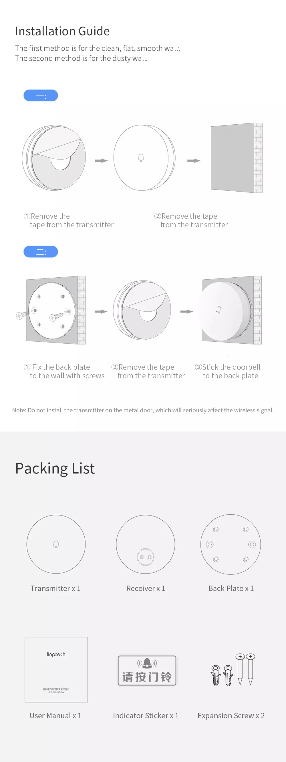 1 х Linptech дверной звонок передатчик